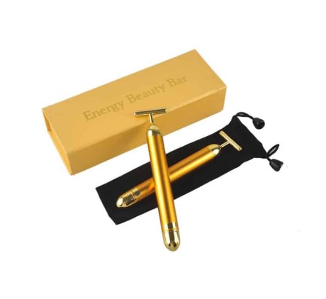L’Energy Beauty Bar est un masseur facial innovant qui allie micro-vibrations et technologie ionique pour améliorer l’apparence et la santé de la peau. Doté d’une tête de massage en forme de T, souvent plaquée or 24 carats, il diffuse des ions négatifs tout en effectuant des micro-vibrations à haute fréquence (jusqu’à 6 000-10 000 vibrations par minute). Cette combinaison unique stimule la microcirculation, favorise la régénération cellulaire, tonifie la peau, réduit signes de l’âge tels que rides, ridules, poches et cernes, et améliore la pénétration des soins appliqués. Compact et ergonomique, l’appareil est simple d’utilisation et adapté à un usage quotidien, à la maison comme en déplacement.